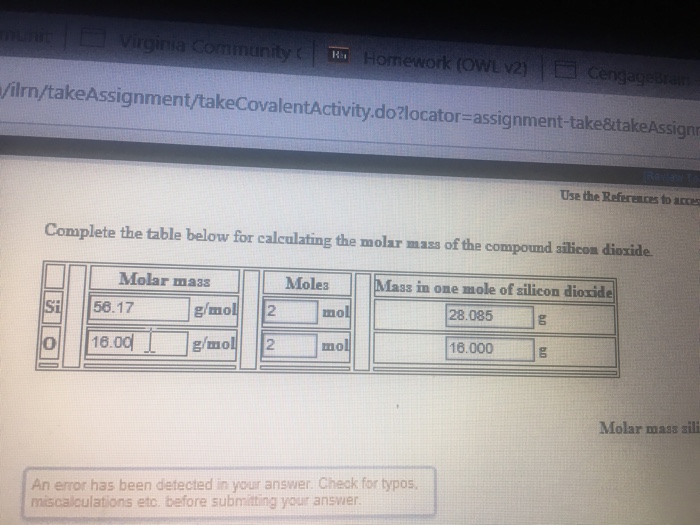 SiO2 molar mass6009 gmol. The mass of Si silicon is 28 and the mass of O oxygen is 16. The mass of a mole of silicon is 280855 g and the mass of a mole atomic oxygen is 15999 g.